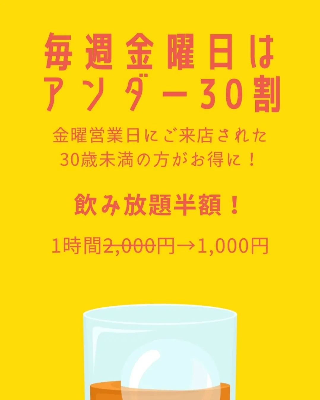 友達や家族と一緒に時間を忘れて楽しむ絶好のチャンスです!貴重な金曜の夜を、笑顔と笑い声でいっぱいにしてください😊ぜひこのお得な機会をお見逃しなく!皆さまのご来店を心よりお待ちしております🙌