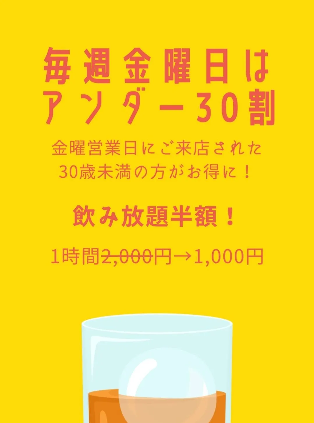 金曜日は30歳未満の方はセット料金が半額になります!